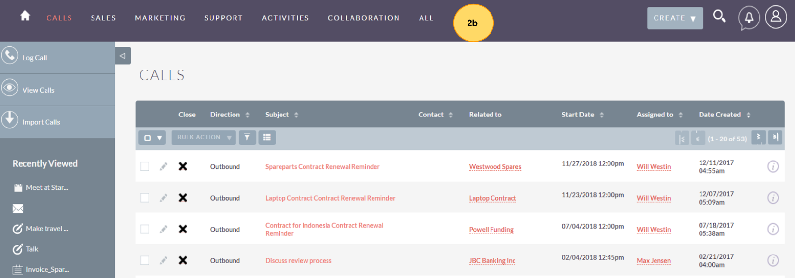 Import Calls – Redirects you to the Import Wizard for the Calls module.