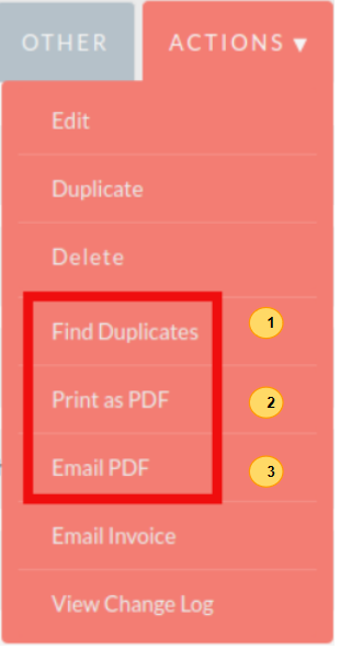 Print as PDF – Allows users to select a template and download or save a PDF of the Invoice.