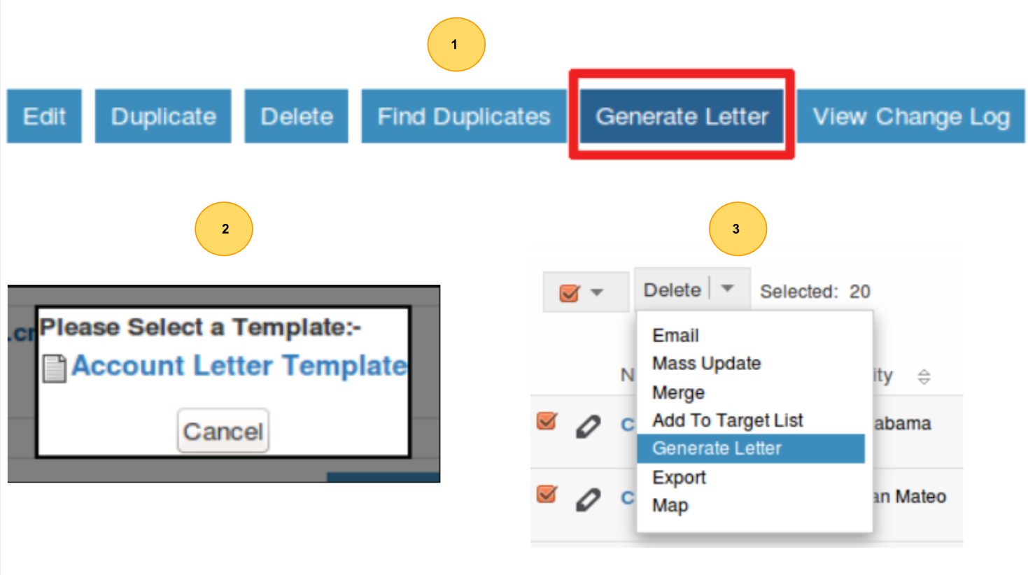 2. Clicking the ‘Generate Letter’ button found on these modules Detail View will prompt a pop-up asking to select a template.