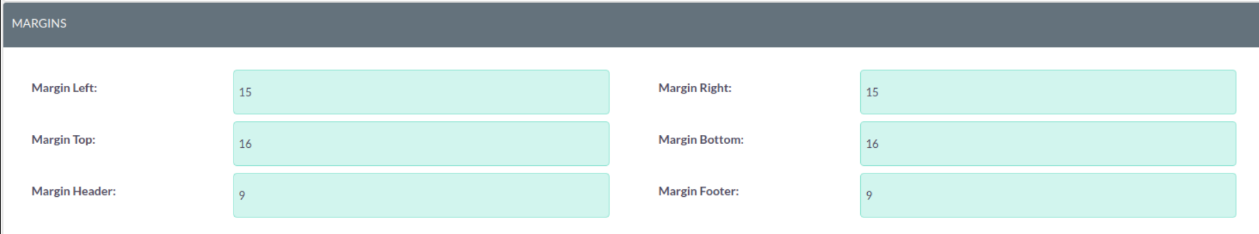 At the bottom of the PDF Template Edit View, you can specify the margin width for the PDF output.