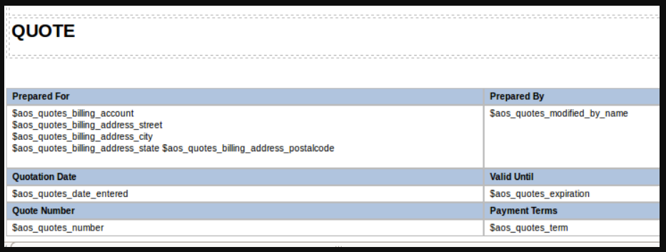 This module provides a WYSIWYG interface to create dynamic PDF templates. You must select a Type. This is the module you are building the PDF Template for. By default the modules you can select are: Quotes Invoices Accounts Contacts Leads