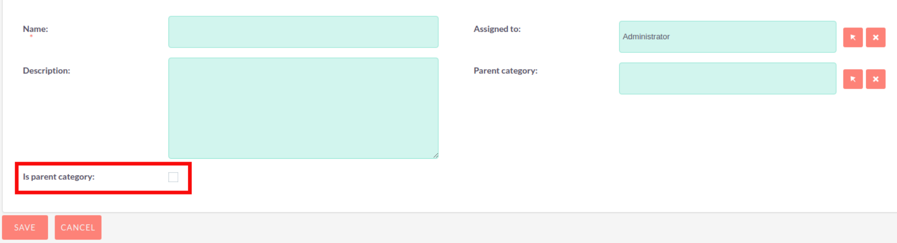 The Parent Category field is a relationship field to another Product Categories record. If you check the ‘Is Parent Category’ field then this signifies that the category is the highest level. Once selected you will not be able to select a Parent Category using the relate field.