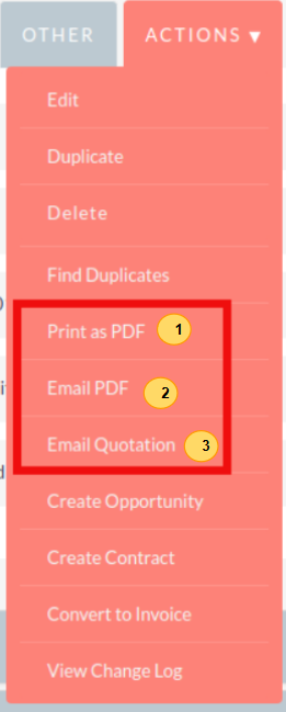 Print as PDF – Allows you to select a template and download or save a PDF of the Quote.